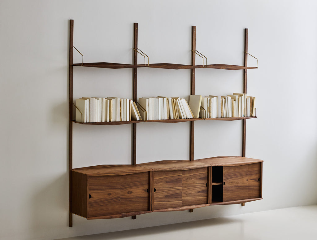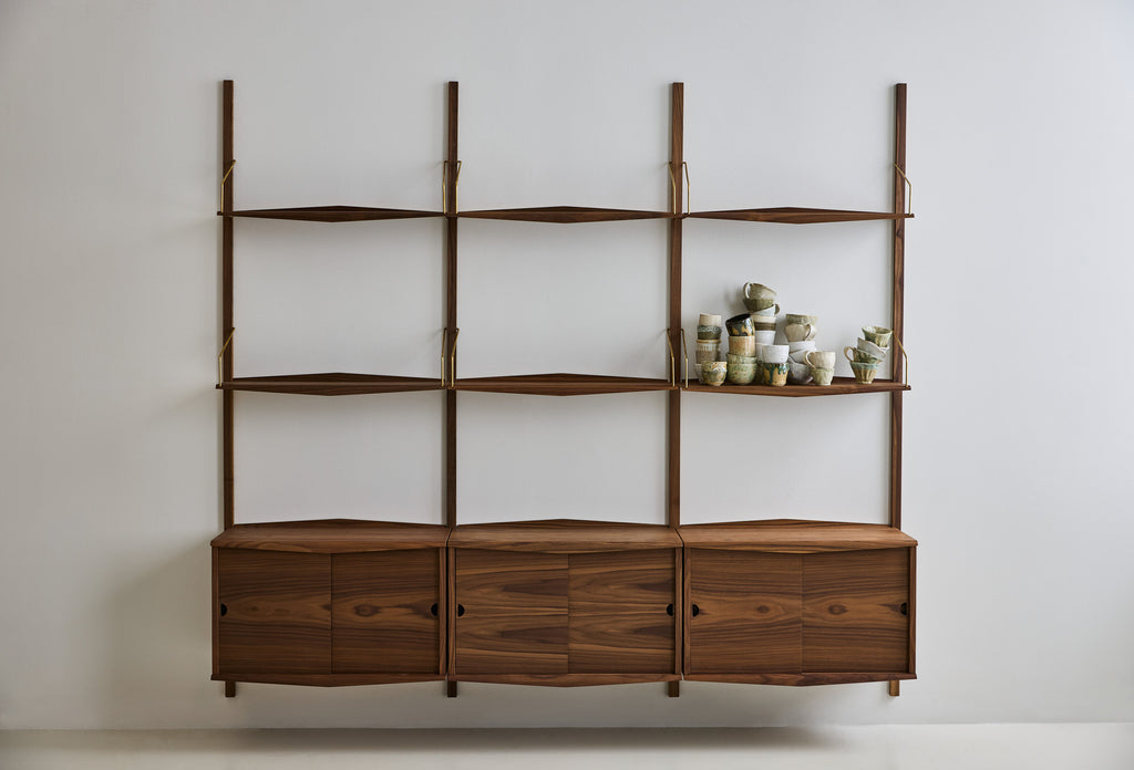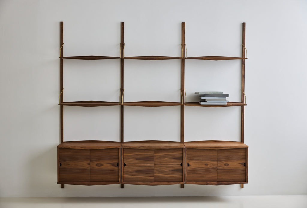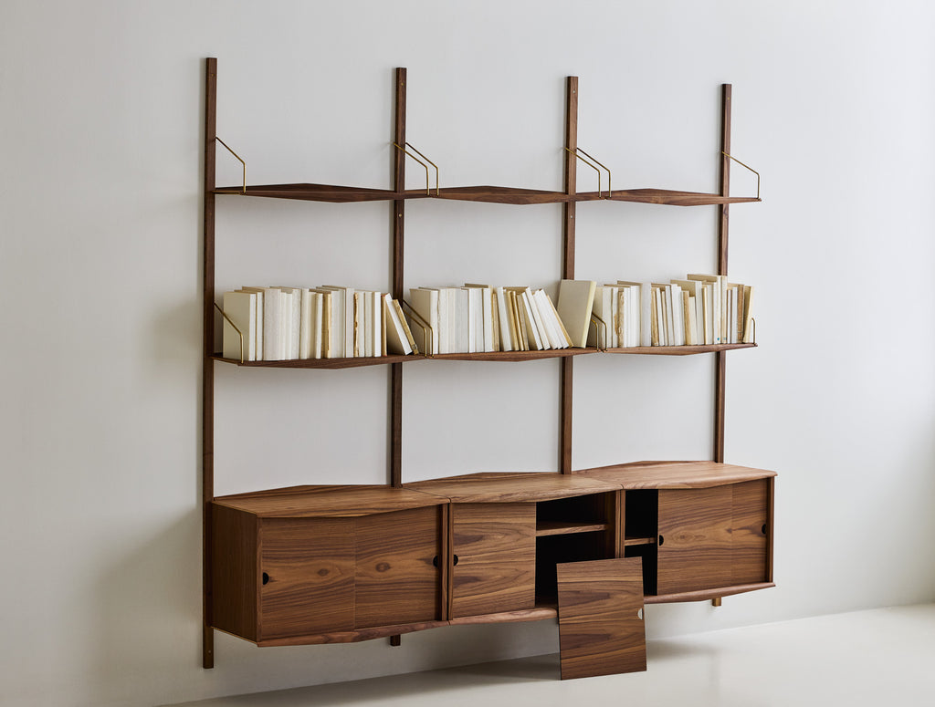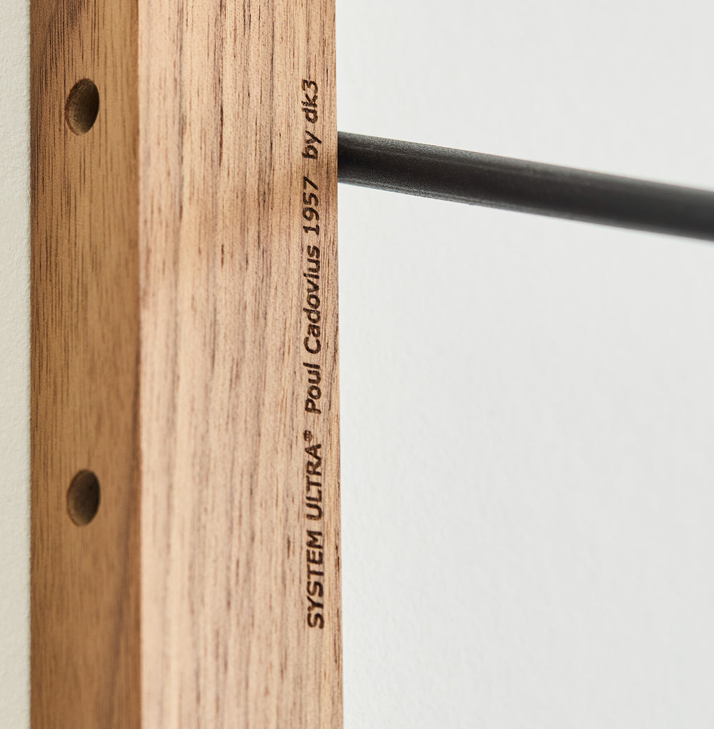 System Ultra is verkrijgbaar in Eiken en Walnoot. Het systeem op de foto is gemaakt van walnotenhout en oorspronkelijk ontworpen door Poul Cadovius, opnieuw geproduceerd door dk3.