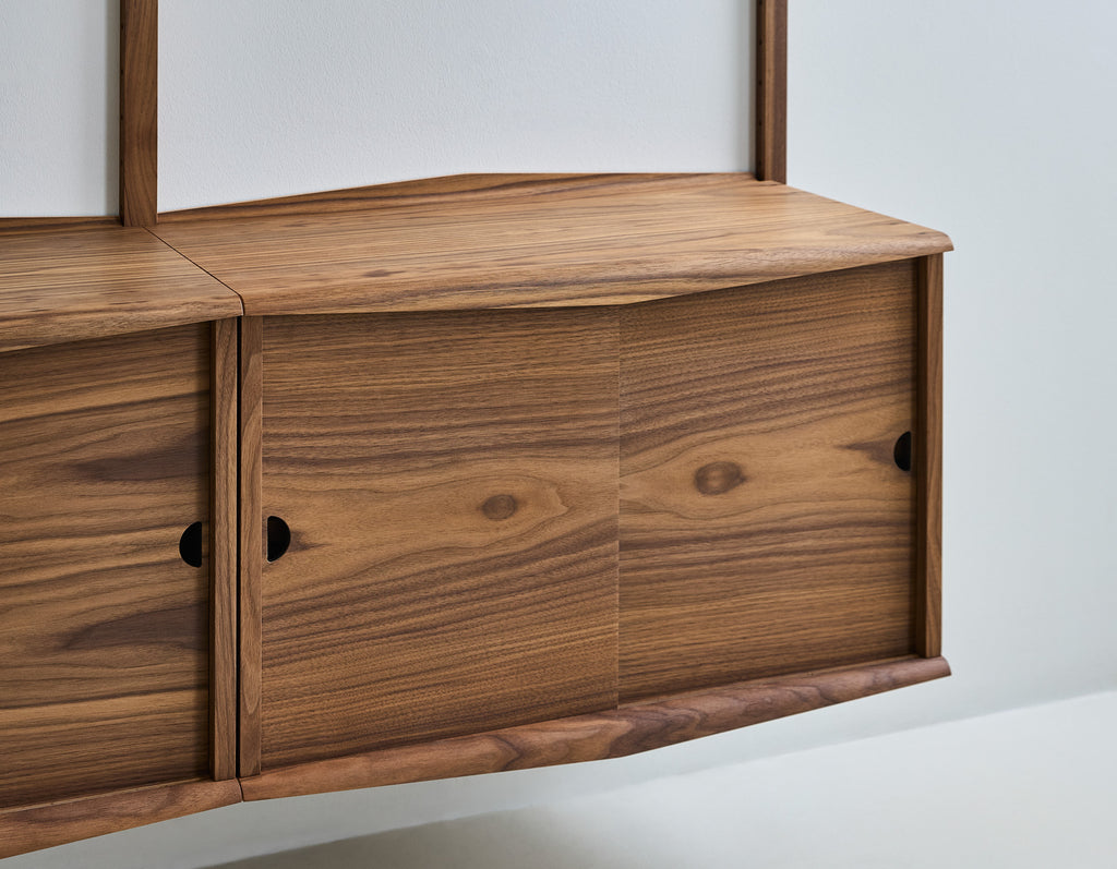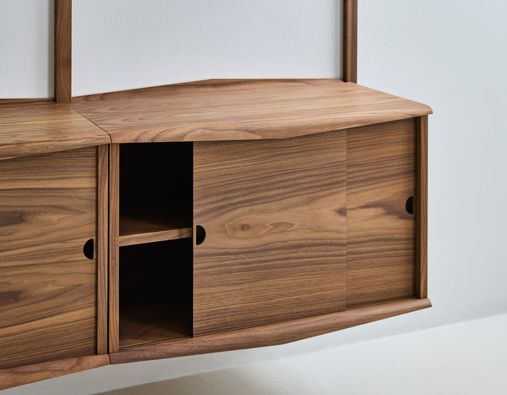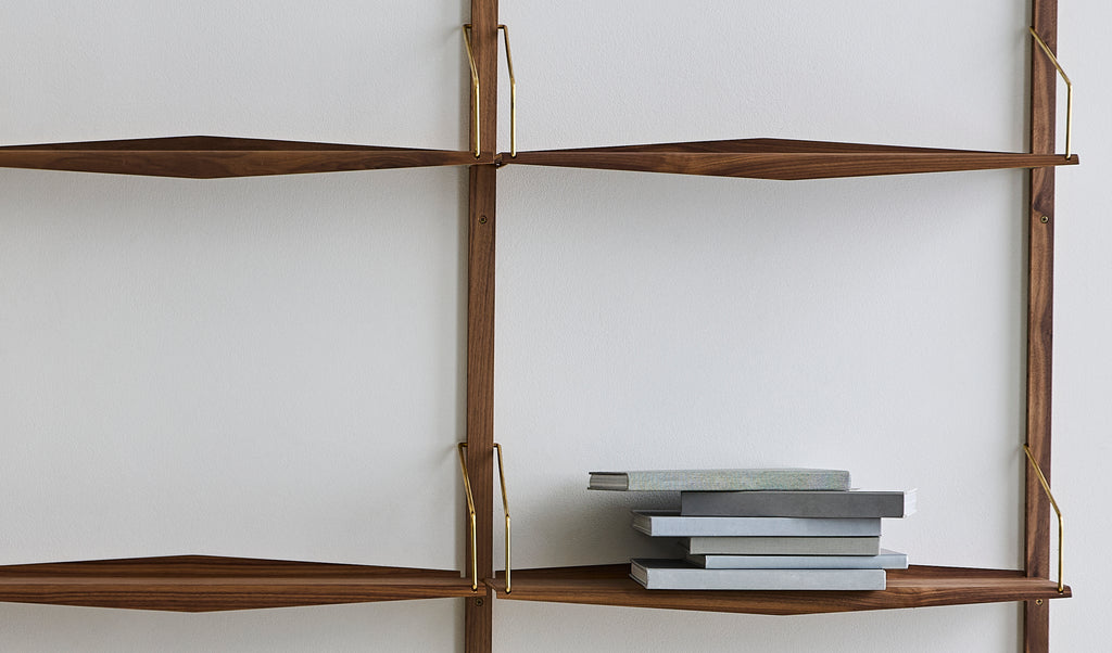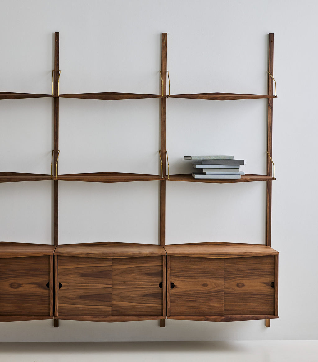 System Ultra is verkrijgbaar in Eiken en Walnoot. Het systeem op de foto is gemaakt van walnotenhout en oorspronkelijk ontworpen door Poul Cadovius, opnieuw geproduceerd door dk3.